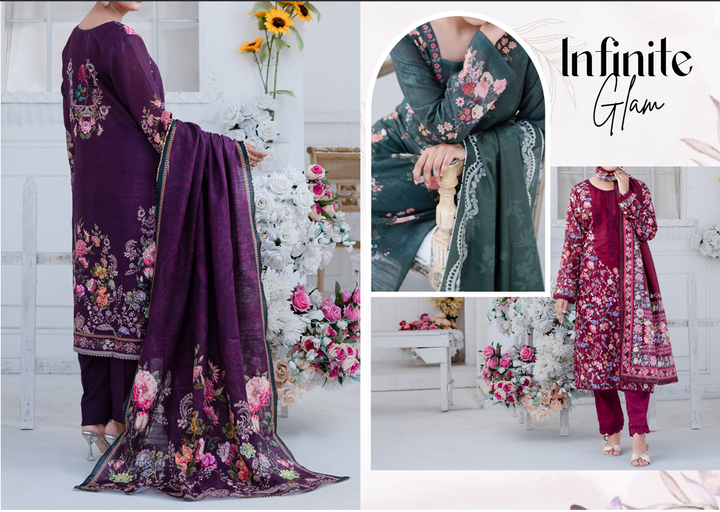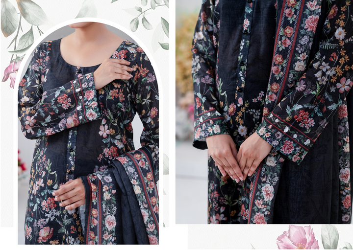 Warm Khaddar Fabric: Crafted from high-quality Khaddar, renowned for its superior softness and warmth, ensuring maximum comfort while maintaining an elegant, structured drape throughout the cooler months.