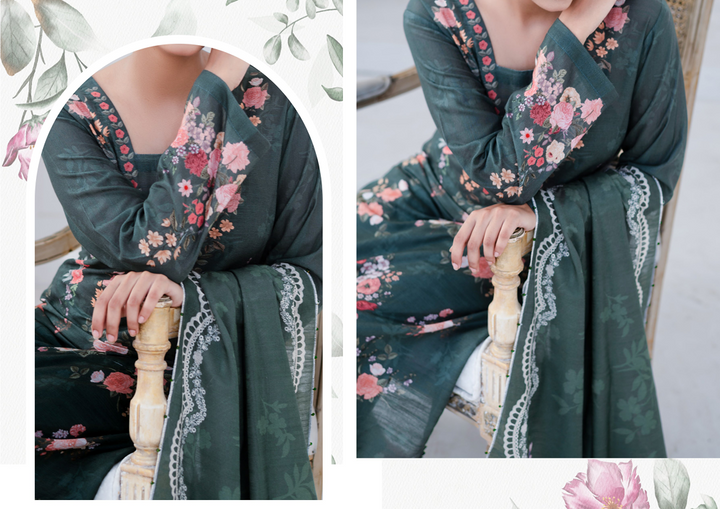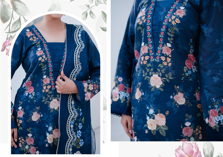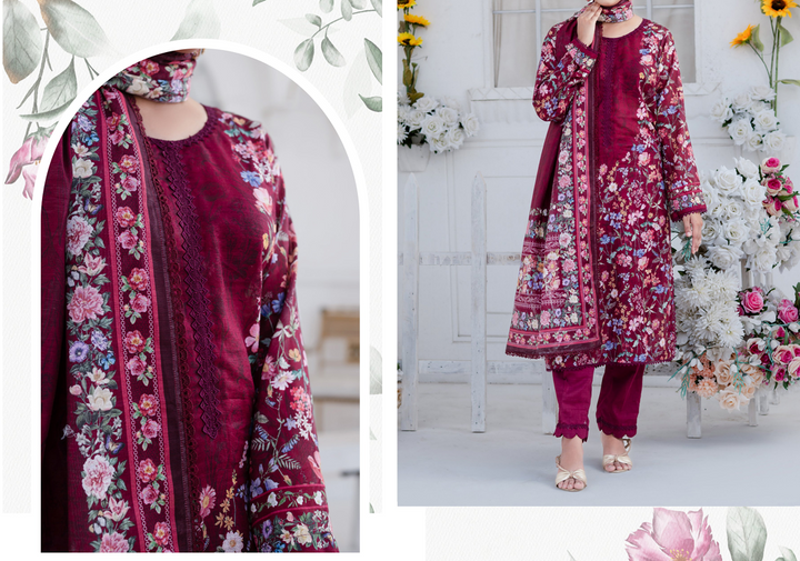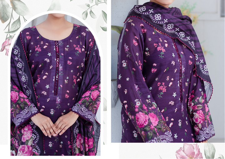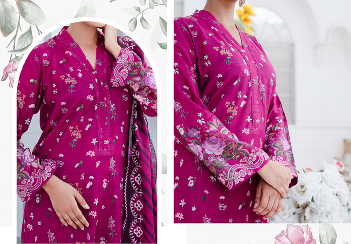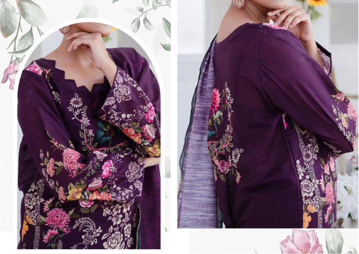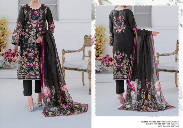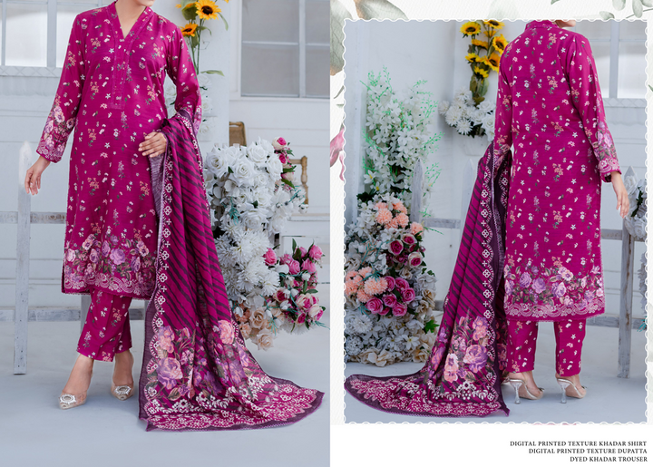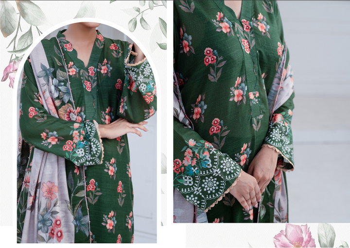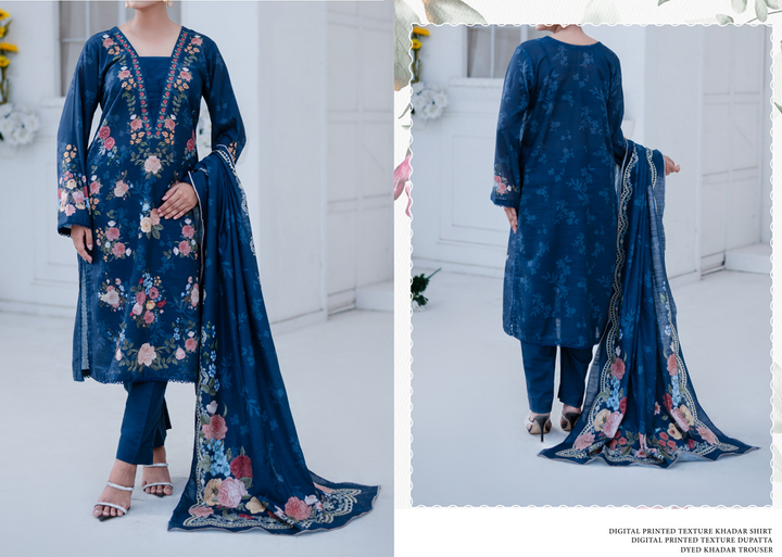 Coordinated 3-Piece Set: Includes the digitally printed Khaddar shirt, the matching printed Khaddar dupatta, and comfortable dyed Khaddar trousers, providing a complete, ready-to-stitch outfit.