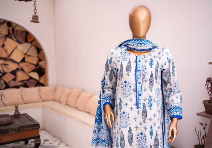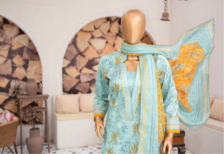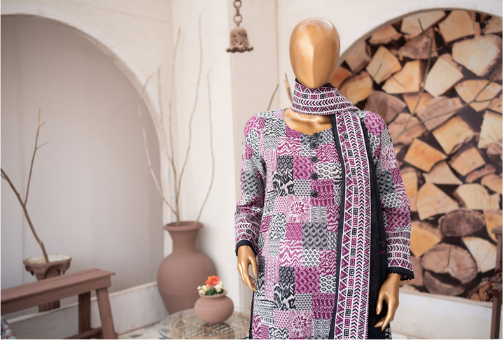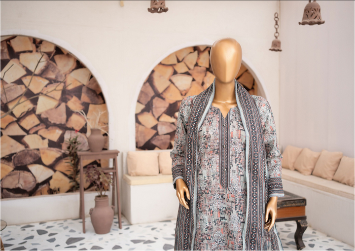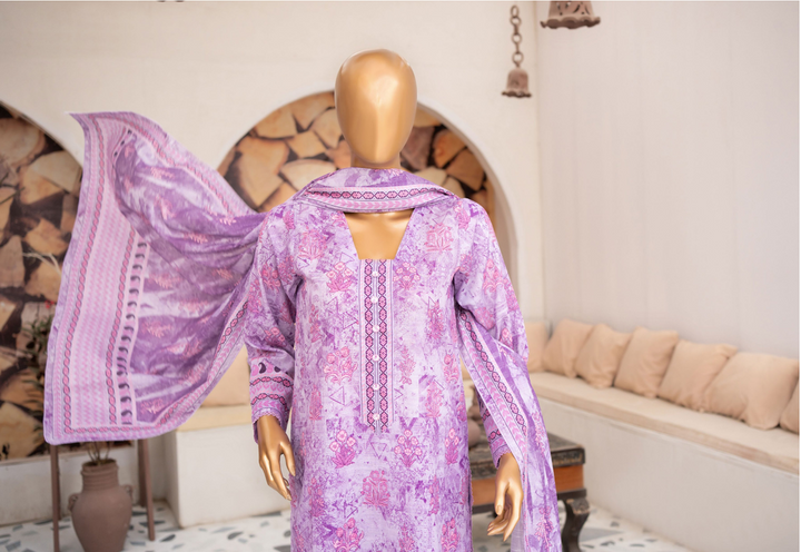 Step into spring with the serene charm of our Lavender Digital Print Suit. This lovely ensemble features a soft, dreamy lavender base adorned with a beautiful abstract or subtle floral digital print. The design is highlighted by a distinctive geometric patterned neckline and coordinating borders, lending a modern, structured touch to the soft color. This suit is the perfect choice for smart-casual wear, sophisticated university attire, or light social gatherings, offering premium comfort and feminine grace.
